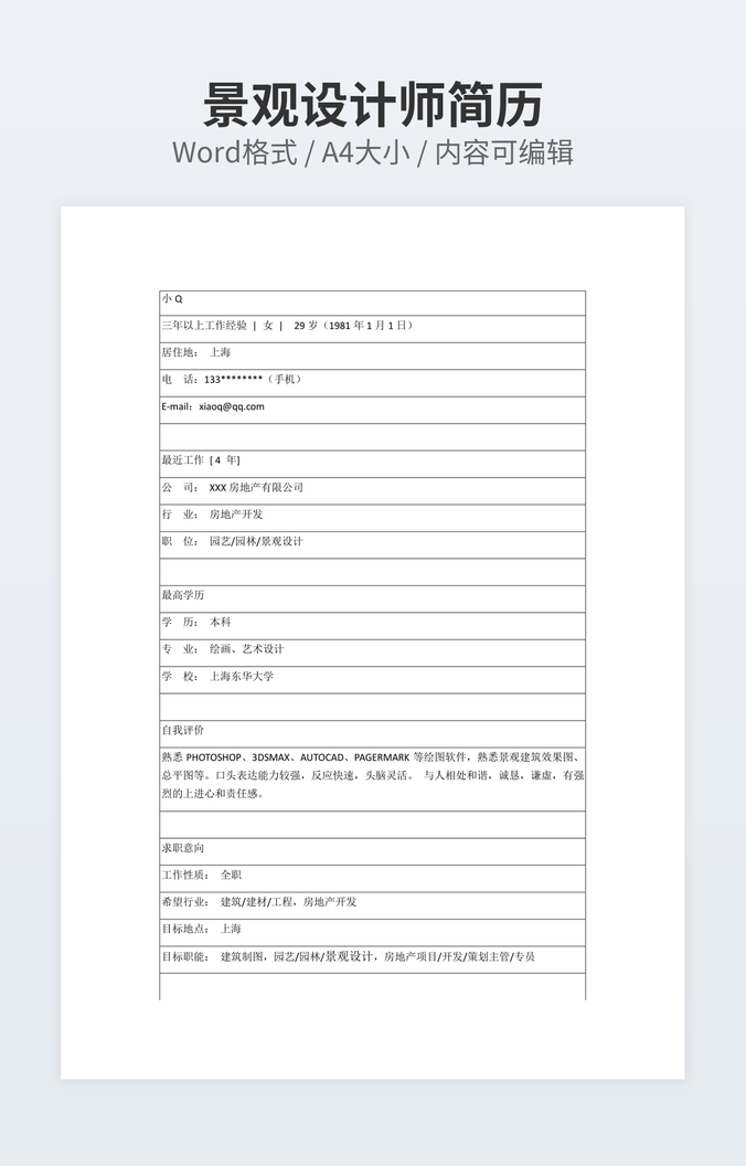 景观设计师简历