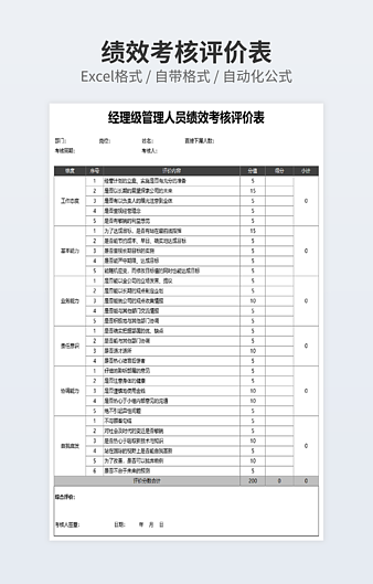 【特殊限制】设计师仅对作品中独创性部分享有著作权,对作品中含有的国旗、国徽等政治图案不享有权利,仅作为作品整体效果的示例展示,禁止商用。 相关关键词: 员工 通用 绩效 考核表 优秀