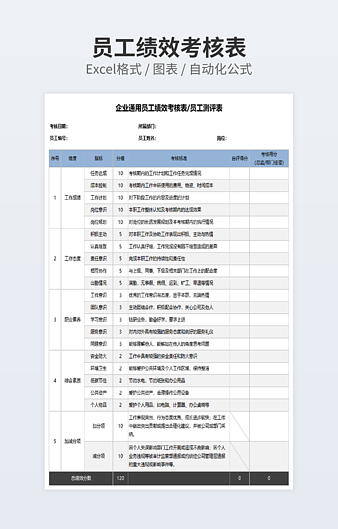 【特殊限制】设计师仅对作品中独创性部分享有著作权,对作品中含有的国旗、国徽等政治图案不享有权利,仅作为作品整体效果的示例展示,禁止商用。 相关关键词: 成品 仓管员 绩效 考核表 Excel 表格 优秀