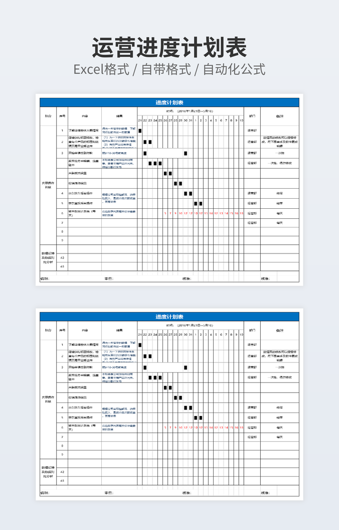 【特殊限制】设计师仅对作品中独创性部分享有著作权,对作品中含有的国旗、国徽等政治图案不享有权利,仅作为作品整体效果的示例展示,禁止商用。 相关关键词: 活动策划 流程 进度表 Excel 模板 优秀