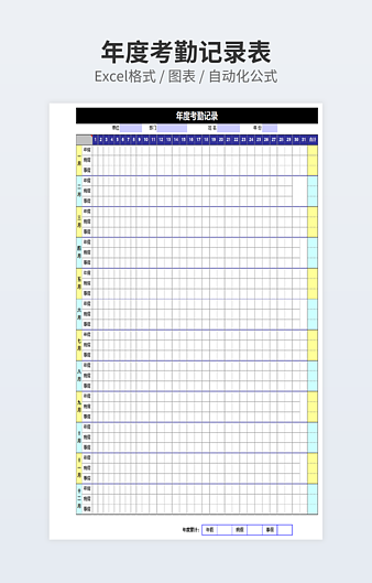 【特殊限制】设计师仅对作品中独创性部分享有著作权,对作品中含有的国旗、国徽等政治图案不享有权利,仅作为作品整体效果的示例展示,禁止商用。 相关关键词: 考勤 记录表 模板