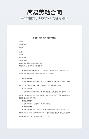 【特殊限制】设计师仅对作品中独创性部分享有著作权,对作品中含有的国旗、国徽等政治图案不享有权利,仅作为作品整体效果的示例展示,禁止商用。 相关关键词: 福建省 劳动 劳动合同 合同书