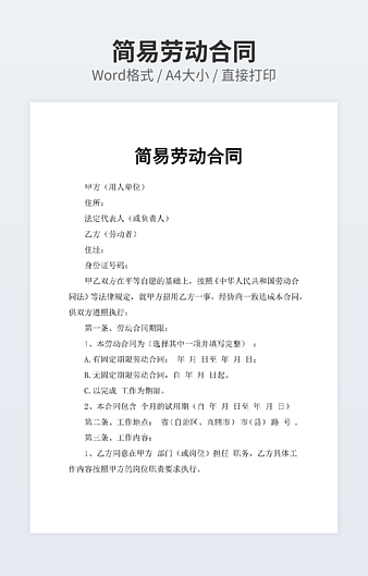 本作品内容为福建省劳动合同书 下载,大小为27.5KB,作品为高清大图模板,格式为doc, 属于劳动合同模板,作品模板源文件下载后可用编辑替换,模板中如有人物画像仅供参考禁止商用。小Q办公网-提供简历,PPT,Word,Excel优质模板素材下载模版平台,拥有海量的工作总结、竞聘求职、年终颁奖、计划书等。 通过小Q办公网下载劳动合同模板源文件编辑修改源文件文字和图片即可使用。