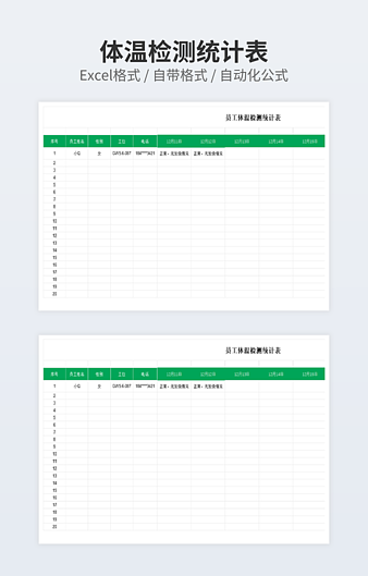 上一篇:员工体温检测统计表下一篇:春节假期员工健康信息报备表为您推荐