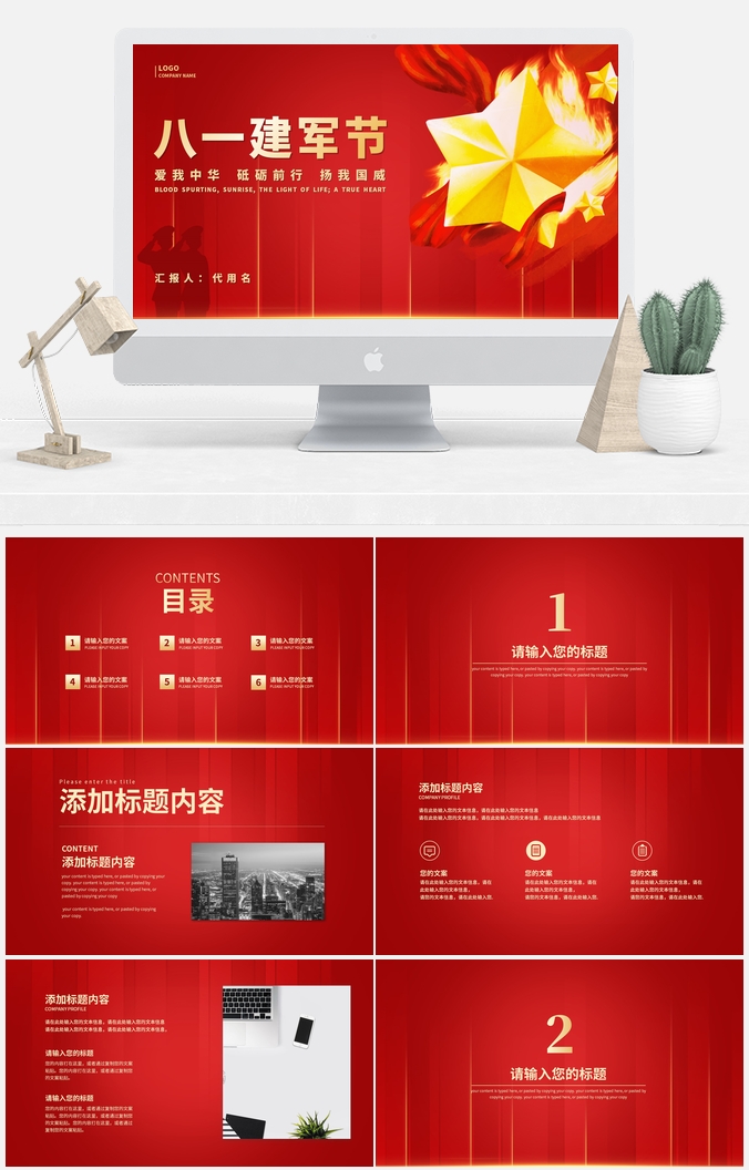 本作品内容为红色简约大气建军节军魂PPT模板下载,大小为14.9MB,作品为高清大图模板,格式为pptx, 属于建军节模板,作品模板源文件下载后可用编辑替换,模板中如有人物画像仅供参考禁止商用。小Q办公网-提供简历,PPT,Word,Excel优质模板素材下载模版平台,拥有海量的工作总结、竞聘求职、年终颁奖、计划书等。 通过小Q办公网下载建军节模板源文件编辑修改源文件文字和图片即可使用。