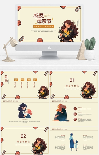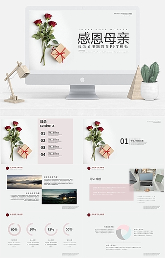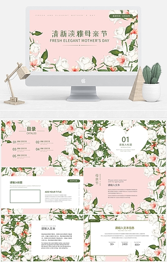 粉色清新简约风母亲节主题教育PPT模板