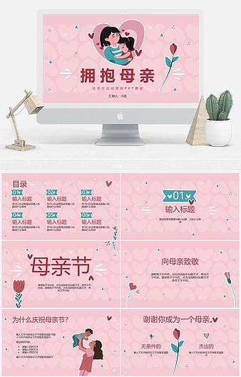 本作品内容为粉色清新简约风母亲节主题教育PPT模板下载,大小为18.9MB,作品为高清大图模板,格式为pptx, 属于母亲节模板,作品模板源文件下载后可用编辑替换,模板中如有人物画像仅供参考禁止商用。小Q办公网-提供简历,PPT,Word,Excel优质模板素材下载模版平台,拥有海量的工作总结、竞聘求职、年终颁奖、计划书等。 通过小Q办公网下载母亲节模板源文件编辑修改源文件文字和图片即可使用。