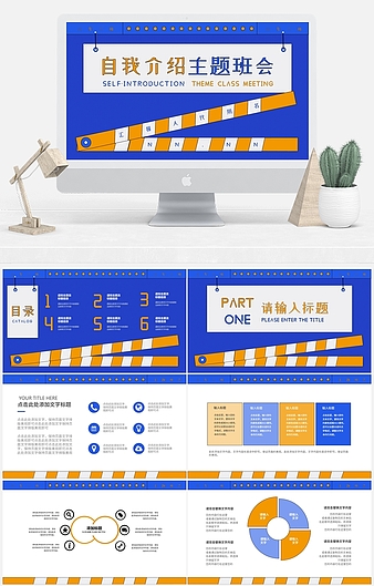 蓝色小清新自我介绍PPT模板