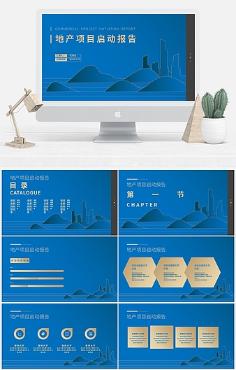 【特殊限制】设计师仅对作品中独创性部分享有著作权,对作品中含有的国旗、国徽等政治图案不享有权利,仅作为作品整体效果的示例展示,禁止商用。 相关关键词: 蓝色 简约风 地产 项目 开发 启动 报告 策划 方案