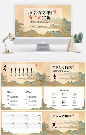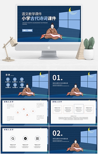 【特殊限制】设计师仅对作品中独创性部分享有著作权,对作品中含有的国旗、国徽等政治图案不享有权利,仅作为作品整体效果的示例展示,禁止商用。 相关关键词: 黄色 古典 插画风 小学 语文 古代 诗词 课件 文化