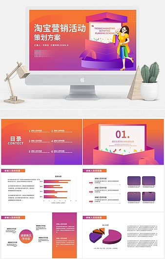 红蓝渐变插画风活动营销方案PPT模板