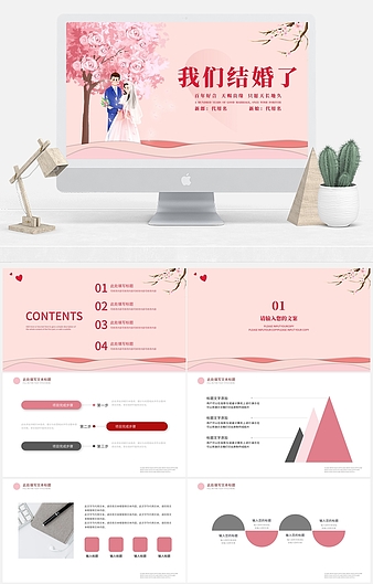 粉色唯美小清新婚礼邀请函PPT模板