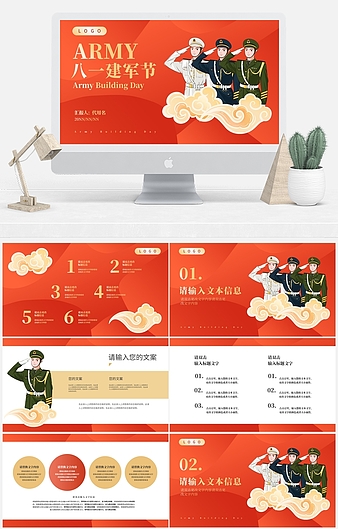本作品内容为红色党政风热血铸军魂PPT模板下载,大小为16.7MB,作品为高清大图模板,格式为pptx, 属于公务宣传模板,作品模板源文件下载后可用编辑替换,模板中如有人物画像仅供参考禁止商用。小Q办公网-提供简历,PPT,Word,Excel优质模板素材下载模版平台,拥有海量的工作总结、竞聘求职、年终颁奖、计划书等。 通过小Q办公网下载公务宣传模板源文件编辑修改源文件文字和图片即可使用。