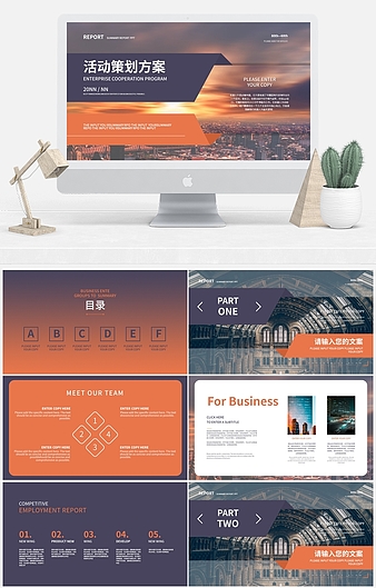 【特殊限制】设计师仅对作品中独创性部分享有著作权,对作品中含有的国旗、国徽等政治图案不享有权利,仅作为作品整体效果的示例展示,禁止商用。 相关关键词: 橙色 简约风 企业 策划 方案 营销 公司 职场 项目