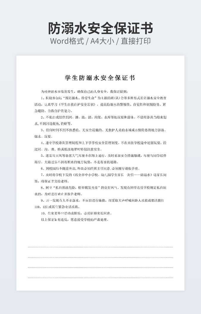 上一篇:学校学生安全保证书下一篇:学生防溺水安全保证书为您推荐