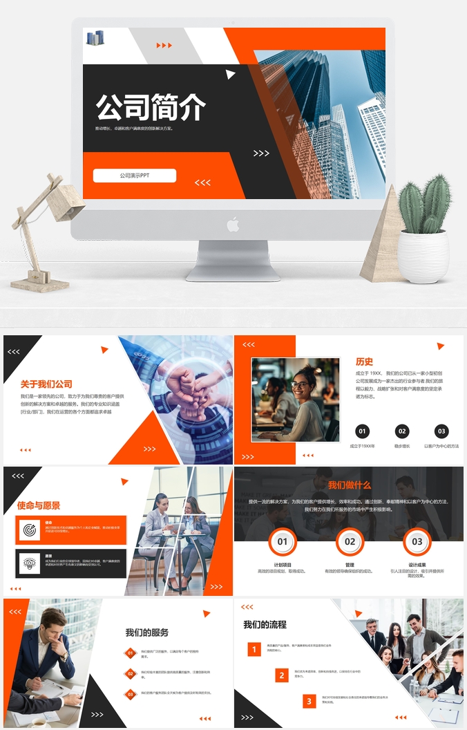 【特殊限制】设计师仅对作品中独创性部分享有著作权,对作品中含有的国旗、国徽等政治图案不享有权利,仅作为作品整体效果的示例展示,禁止商用。 相关关键词: 圆形 橙黄 公司简介 模板