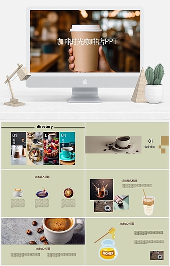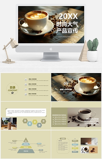 深绿色简约风咖啡产品发布PPT模板