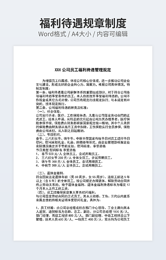 本作品内容为薪资福利管理规定下载,大小为20.97KB,作品为高清大图模板,格式为docx, 属于薪资福利模板,作品模板源文件下载后可用编辑替换,模板中如有人物画像仅供参考禁止商用。小Q办公网-提供简历,PPT,Word,Excel优质模板素材下载模版平台,拥有海量的工作总结、竞聘求职、年终颁奖、计划书等。 通过小Q办公网下载薪资福利模板源文件编辑修改源文件文字和图片即可使用。