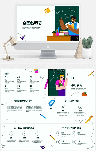 【特殊限制】设计师仅对作品中独创性部分享有著作权,对作品中含有的国旗、国徽等政治图案不享有权利,仅作为作品整体效果的示例展示,禁止商用。 相关关键词: 彩色 色卡 通风 世界 教师节 PPT 模板