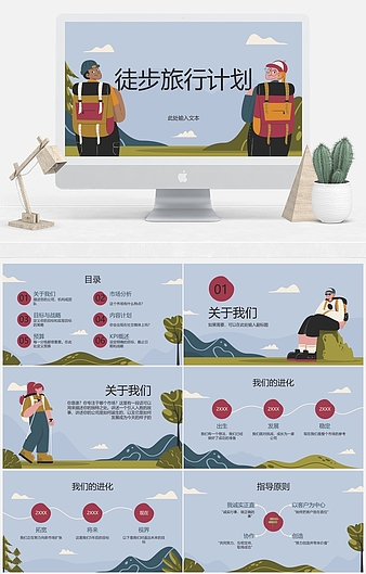 本作品内容为绿色卡通风户外露营旅游攻略PPT模板下载,大小为9.7MB,作品为高清大图模板,格式为pptx, 属于旅游模板,作品模板源文件下载后可用编辑替换,模板中如有人物画像仅供参考禁止商用。小Q办公网-提供简历,PPT,Word,Excel优质模板素材下载模版平台,拥有海量的工作总结、竞聘求职、年终颁奖、计划书等。 通过小Q办公网下载旅游模板源文件编辑修改源文件文字和图片即可使用。