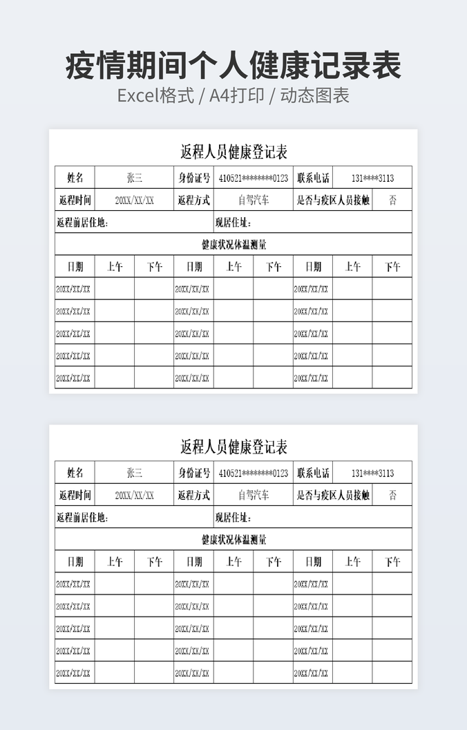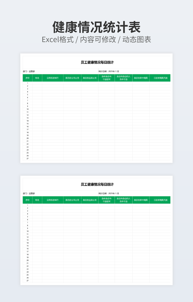 本作品内容为学生健康登记卡下载,大小为20.48KB,作品为高清大图模板,格式为xlsx, 属于健康登记模板,作品模板源文件下载后可用编辑替换,模板中如有人物画像仅供参考禁止商用。小Q办公网-提供简历,PPT,Word,Excel优质模板素材下载模版平台,拥有海量的工作总结、竞聘求职、年终颁奖、计划书等。 通过小Q办公网下载健康登记模板源文件编辑修改源文件文字和图片即可使用。
