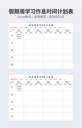 本作品内容为绿色计划作息时间表下载,大小为25.1KB,作品为高清大图模板,格式为xlsx, 属于作息时间表模板,作品模板源文件下载后可用编辑替换,模板中如有人物画像仅供参考禁止商用。小Q办公网-提供简历,PPT,Word,Excel优质模板素材下载模版平台,拥有海量的工作总结、竞聘求职、年终颁奖、计划书等。 通过小Q办公网下载作息时间表模板源文件编辑修改源文件文字和图片即可使用。