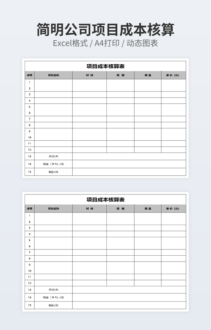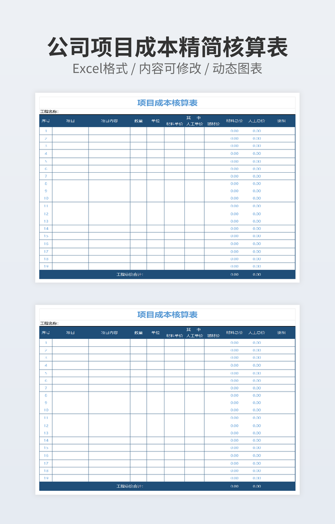 本作品内容为可视化项目成本核算表下载,大小为10.79KB,作品为高清大图模板,格式为xls, 属于项目成本核算模板,作品模板源文件下载后可用编辑替换,模板中如有人物画像仅供参考禁止商用。小Q办公网-提供简历,PPT,Word,Excel优质模板素材下载模版平台,拥有海量的工作总结、竞聘求职、年终颁奖、计划书等。 通过小Q办公网下载项目成本核算模板源文件编辑修改源文件文字和图片即可使用。