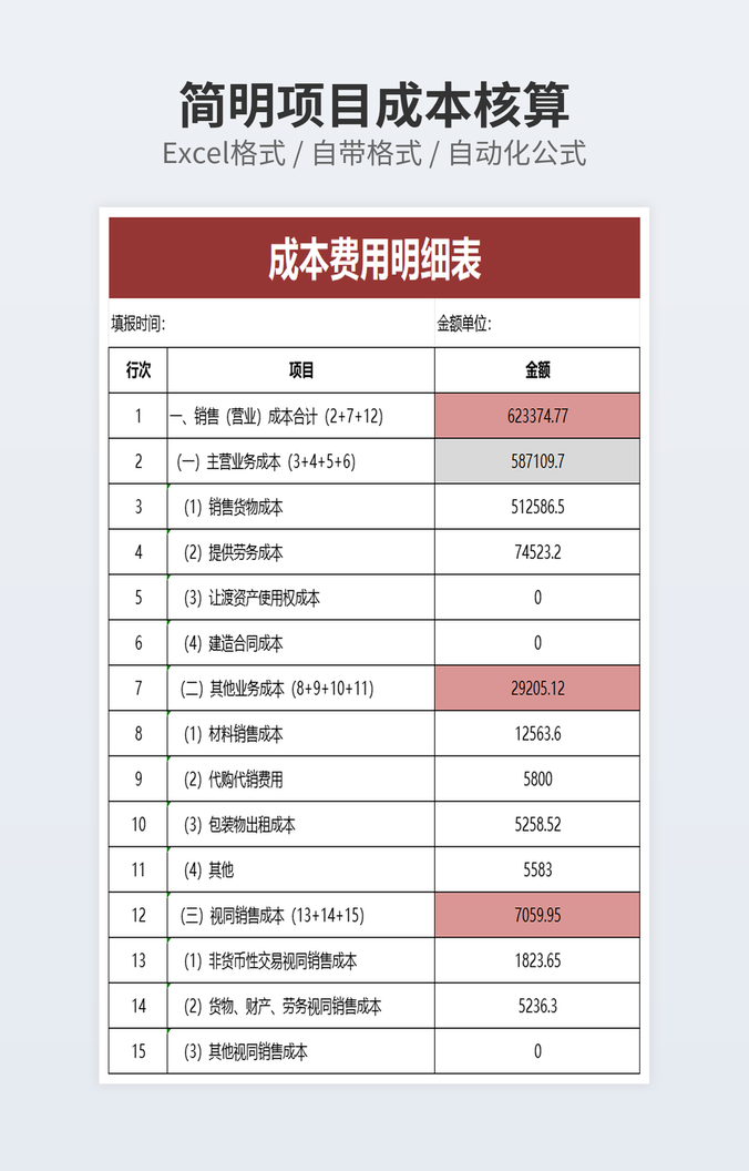 可视化项目成本核算表