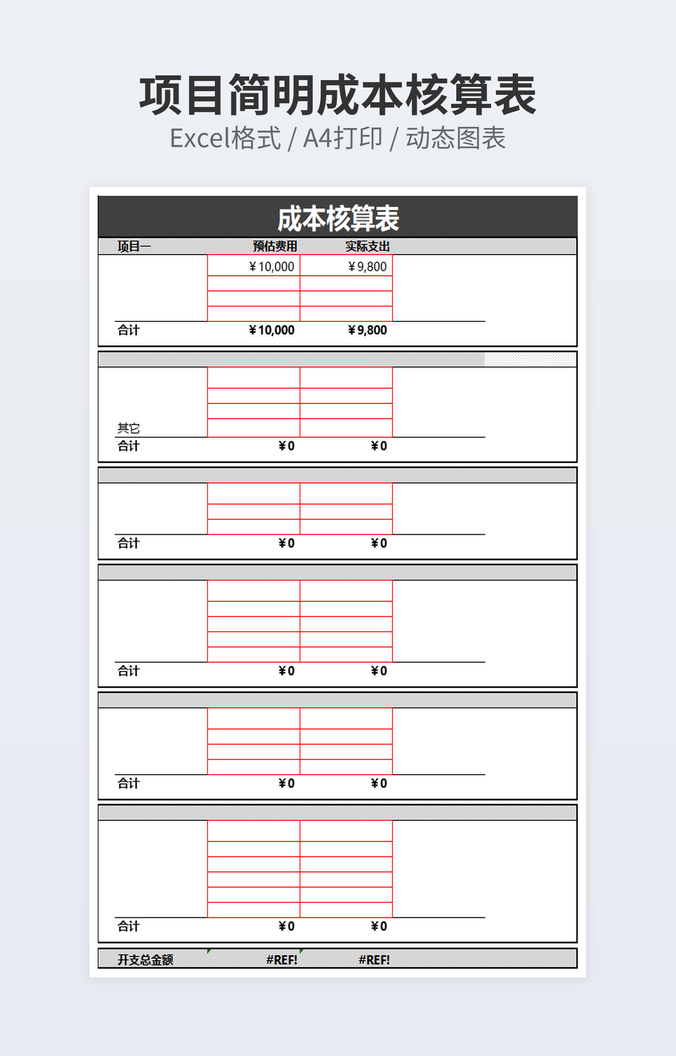 本作品内容为墨绿色项目核算表下载,大小为13.63KB,作品为高清大图模板,格式为xlsx, 属于项目成本核算模板,作品模板源文件下载后可用编辑替换,模板中如有人物画像仅供参考禁止商用。小Q办公网-提供简历,PPT,Word,Excel优质模板素材下载模版平台,拥有海量的工作总结、竞聘求职、年终颁奖、计划书等。 通过小Q办公网下载项目成本核算模板源文件编辑修改源文件文字和图片即可使用。
