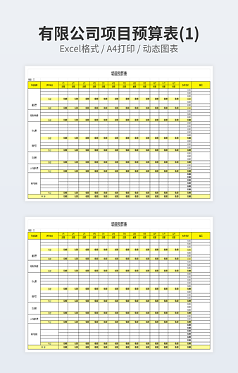 本作品内容为有限公司项目成本核算表下载,大小为9.38KB,作品为高清大图模板,格式为xlsx, 属于项目预算表模板,作品模板源文件下载后可用编辑替换,模板中如有人物画像仅供参考禁止商用。小Q办公网-提供简历,PPT,Word,Excel优质模板素材下载模版平台,拥有海量的工作总结、竞聘求职、年终颁奖、计划书等。 通过小Q办公网下载项目预算表模板源文件编辑修改源文件文字和图片即可使用。