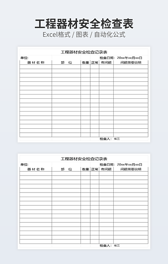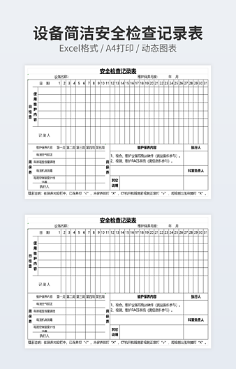 本作品内容为简洁安全检查表下载,大小为7.89KB,作品为高清大图模板,格式为xlsx, 属于安全检查模板,作品模板源文件下载后可用编辑替换,模板中如有人物画像仅供参考禁止商用。小Q办公网-提供简历,PPT,Word,Excel优质模板素材下载模版平台,拥有海量的工作总结、竞聘求职、年终颁奖、计划书等。 通过小Q办公网下载安全检查模板源文件编辑修改源文件文字和图片即可使用。