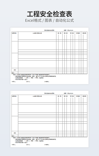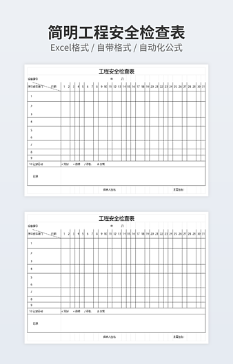 【特殊限制】设计师仅对作品中独创性部分享有著作权,对作品中含有的国旗、国徽等政治图案不享有权利,仅作为作品整体效果的示例展示,禁止商用。 相关关键词: 设备 简洁 安全检查 记录表