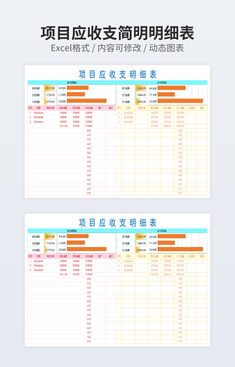 【特殊限制】设计师仅对作品中独创性部分享有著作权,对作品中含有的国旗、国徽等政治图案不享有权利,仅作为作品整体效果的示例展示,禁止商用。 相关关键词: 项目 应收 收支 简洁 明细表
