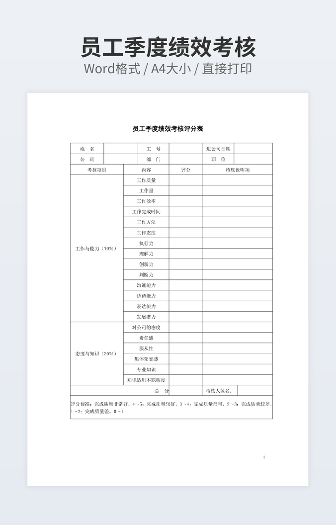 【特殊限制】设计师仅对作品中独创性部分享有著作权,对作品中含有的国旗、国徽等政治图案不享有权利,仅作为作品整体效果的示例展示,禁止商用。 相关关键词: KPI 绩效 考核表 超优秀