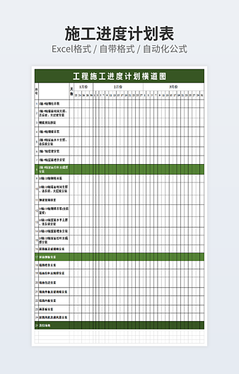 【特殊限制】设计师仅对作品中独创性部分享有著作权,对作品中含有的国旗、国徽等政治图案不享有权利,仅作为作品整体效果的示例展示,禁止商用。 相关关键词: 建筑 工程施工 进度表 优秀