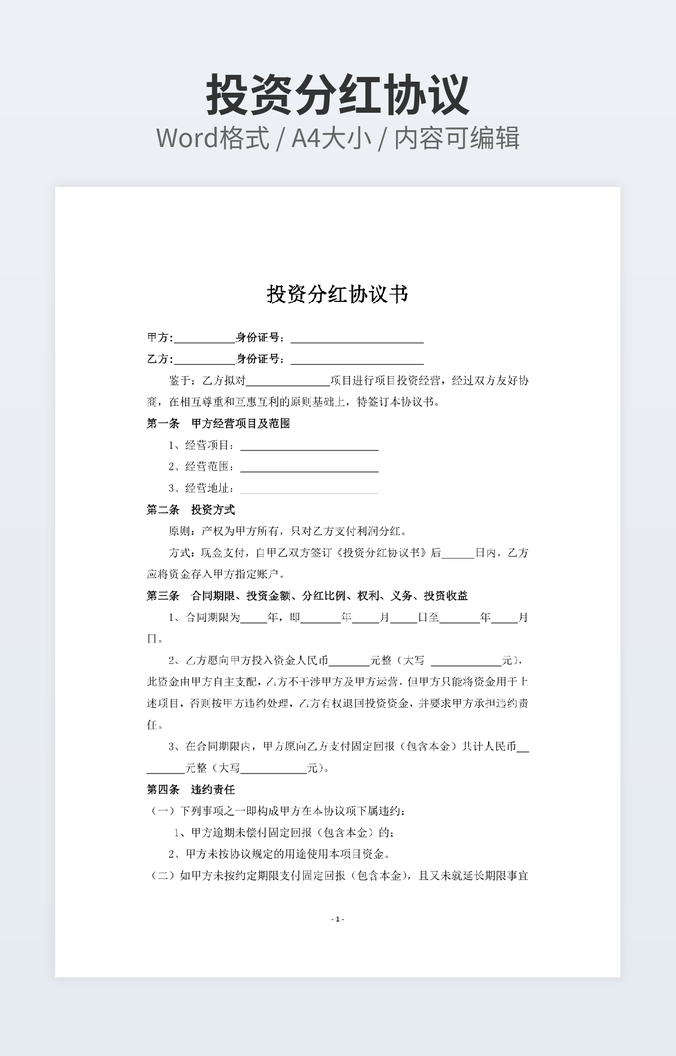 投资分红协议律师拟定版本