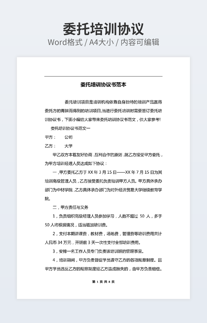 委托培训协议书范本