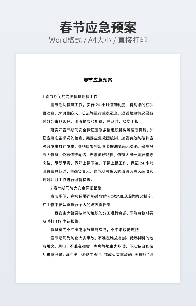 春节应急预案