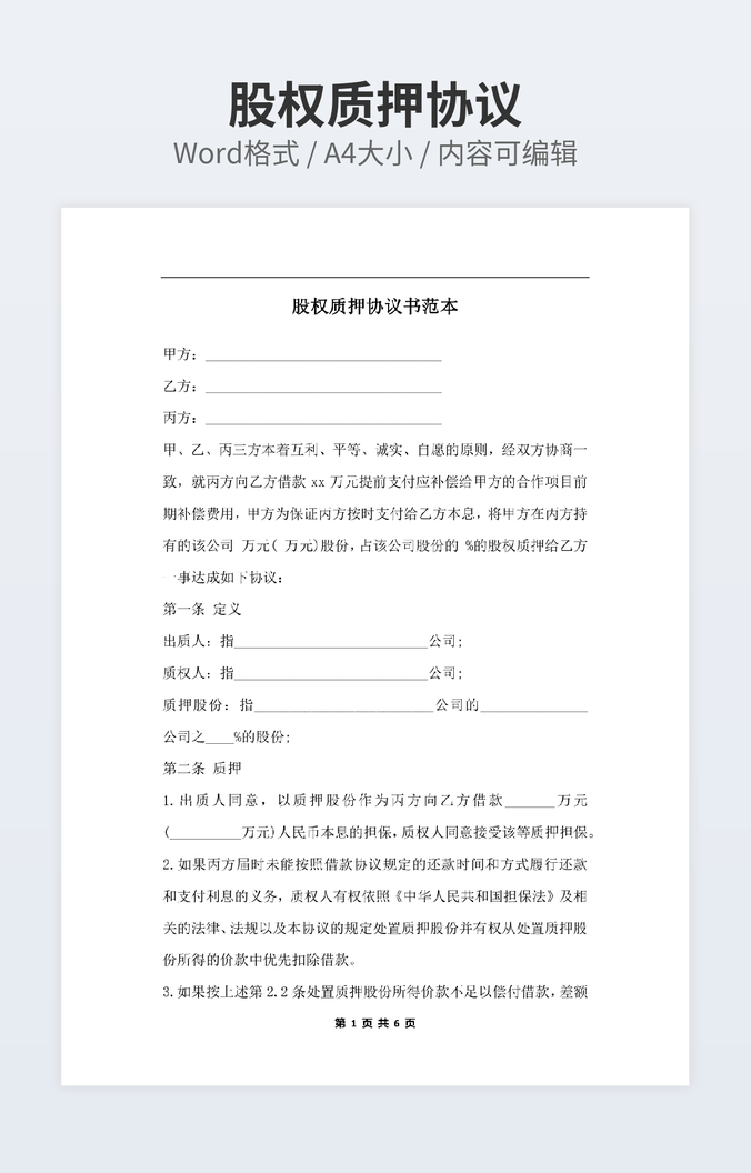 股权质押协议书范本