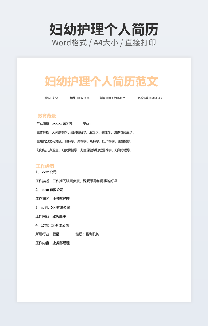 妇幼护理个人简历
