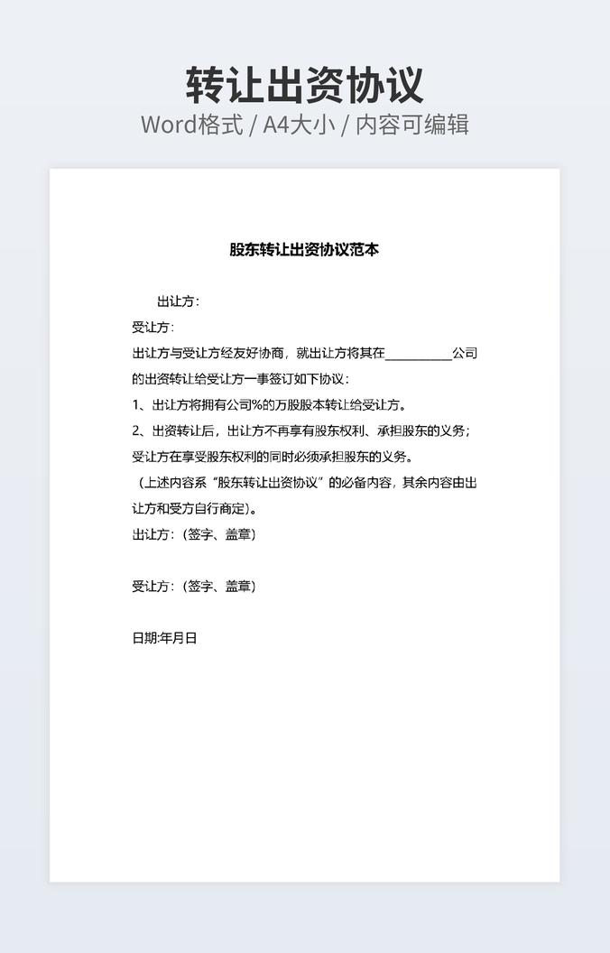 股东转让出资协议范本