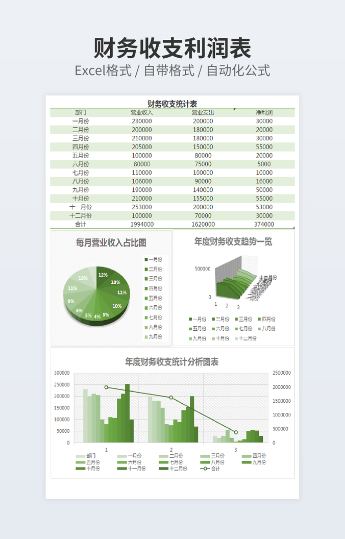 年度财务收支利润统计excel表格模板