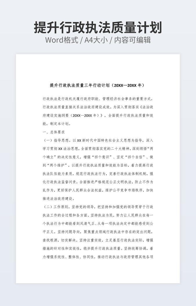 提升行政执法质量计划