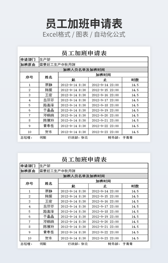 员工加班申请表