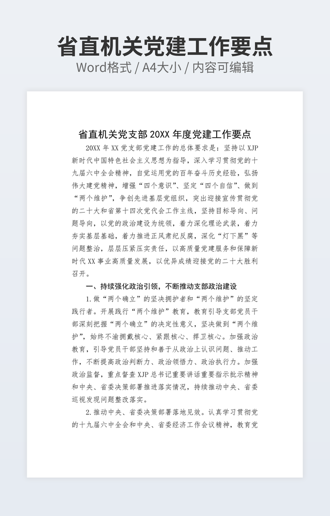 省直机关党建工作要点