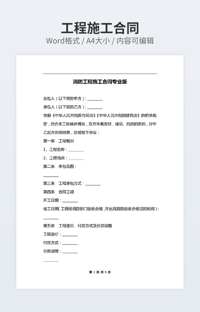 消防工程施工合同专业版
