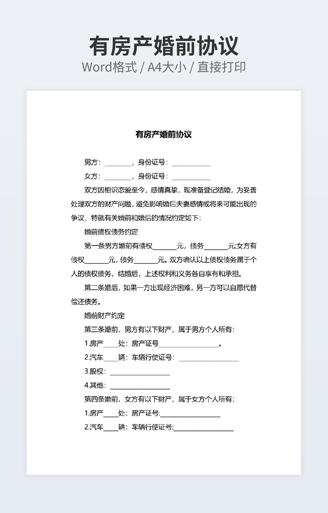 有房产婚前协议