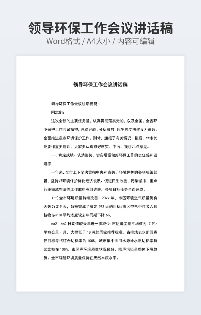 领导环保工作会议讲话稿