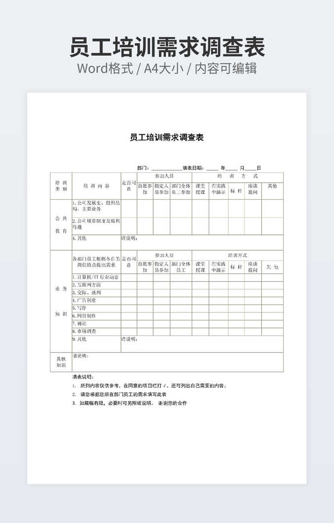 员工培训需求调查表