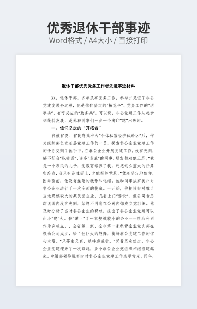 优秀退休干部事迹